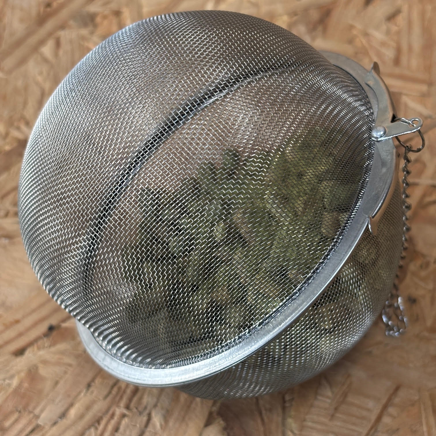 A small chain allows you to hook it over the edge of the fermenter / boiler. Or you can just drop in the hop sphere and it will bob around under the surface infusing the beer with the hops.