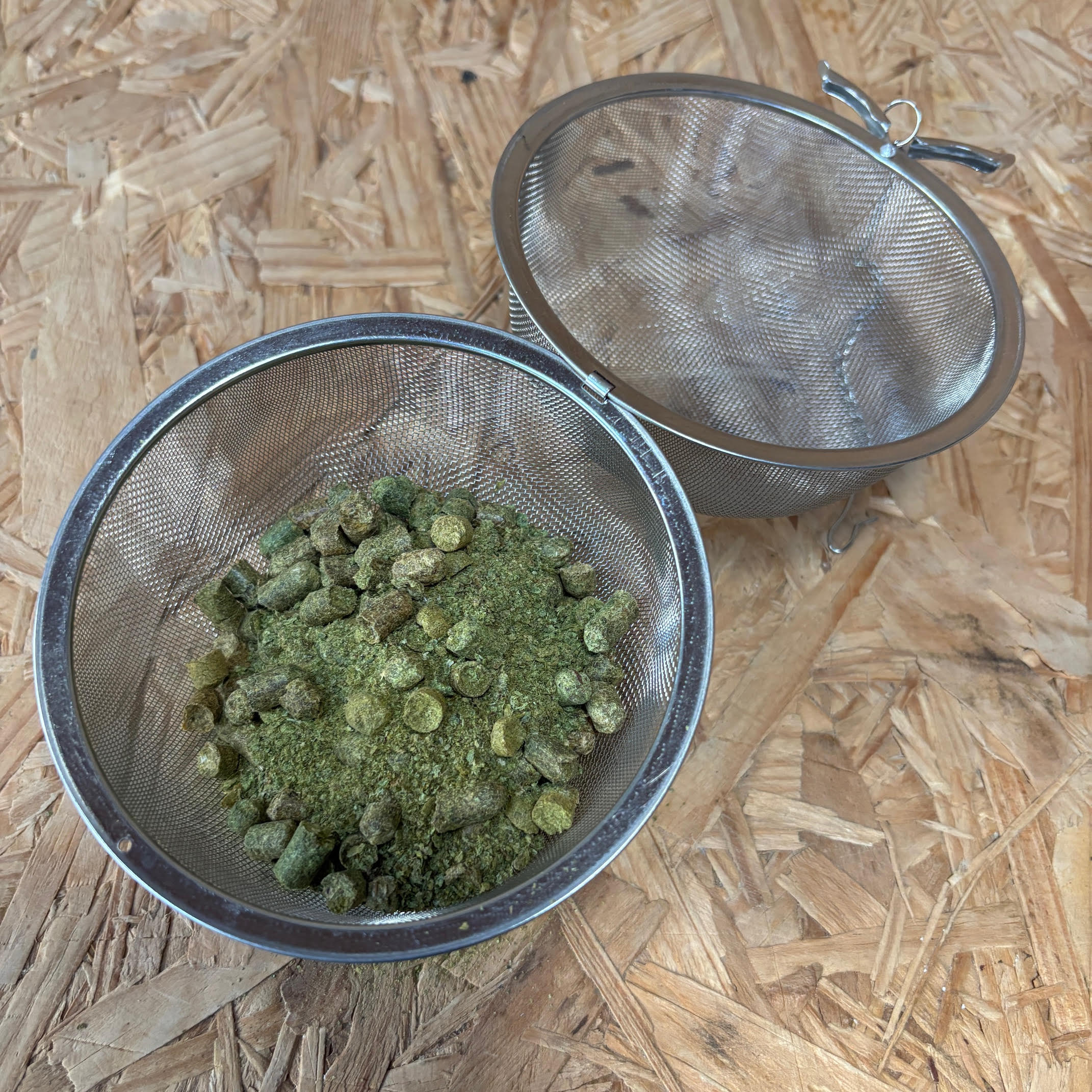 The 11cm sphere has 10cm of physical sphere mesh that is suitable for up to 100g of hop pellets.