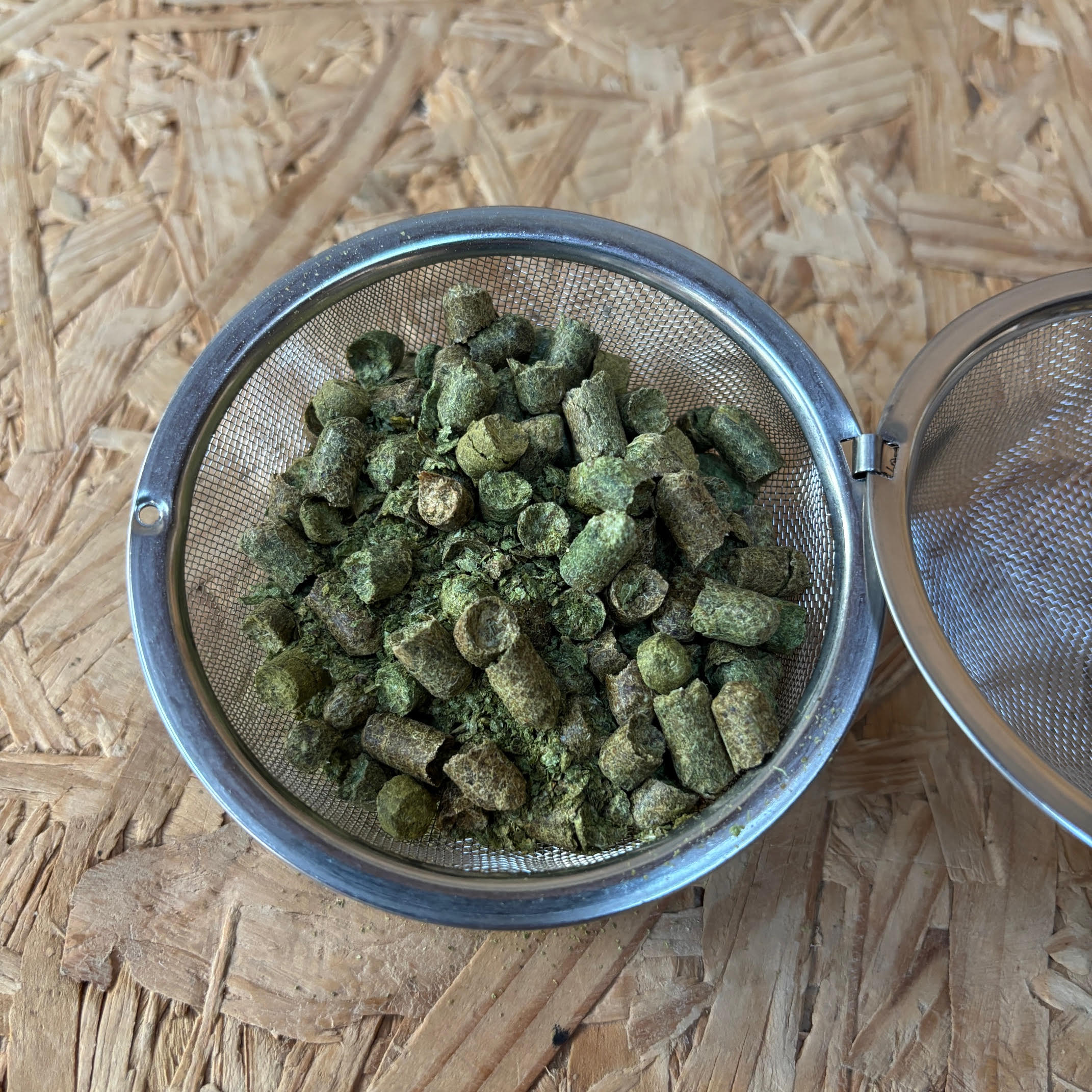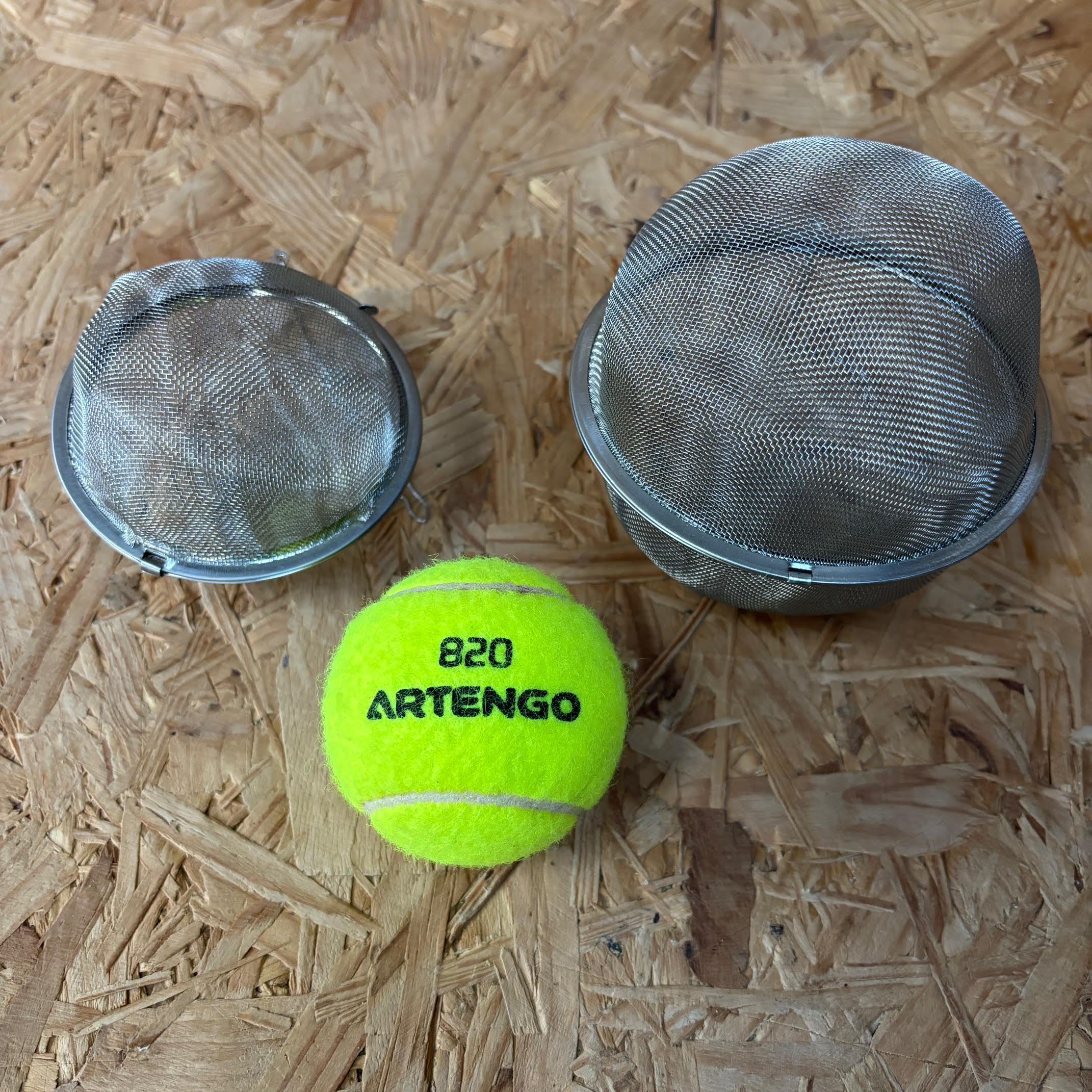 The 9cm sphere has 8cm of physical sphere mesh that is suitable for up to 50g of hop pellets.